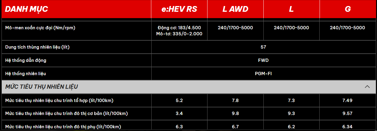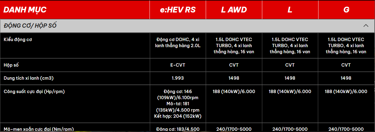 Honda CRV 2024 sử dụng động cơ xăng 1.5L Vtec Turbo công suất 188Hp, hộp số vô cấp CVT