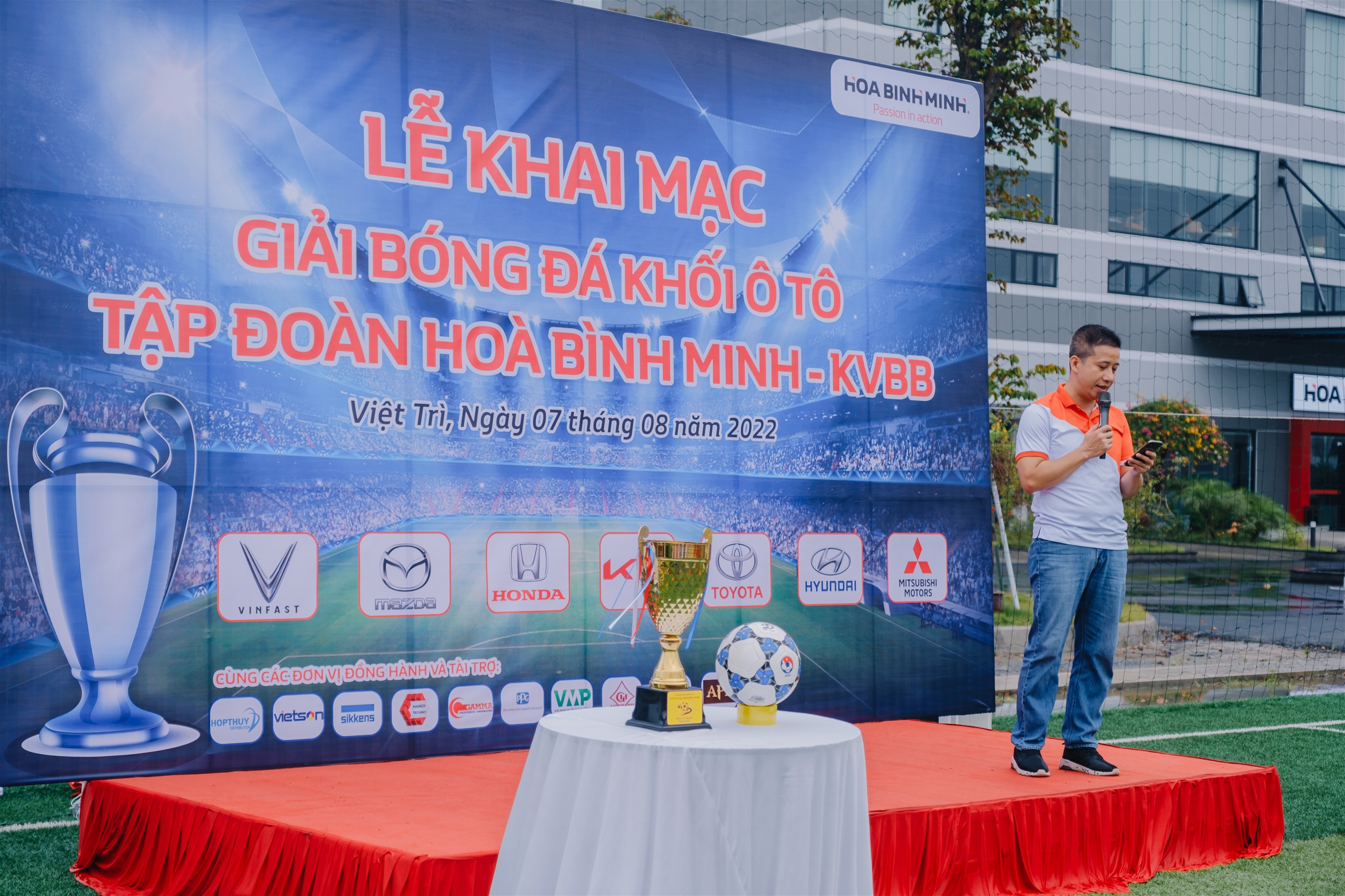 Phát biểu tại buổi lễ, đại diện Ban tổ chức, ông Trần Minh Quân - Phó Giám đốc Công ty Ô tô đã cảm ơn sự quan tâm, tạo điều kiện của các Ban lãnh đạo: Tập đoàn Hoà Bình Minh; Công ty Ô tô; các đơn vị thành viên và các đơn vị tài trợ. Đồng thời nhấn mạnh đây là Giải đấu thể thao có ý nghĩa quan trọng và được chuẩn bị công phu, hướng tới tính chuyên nghiệp của một giải đấu thể thao bóng đá.