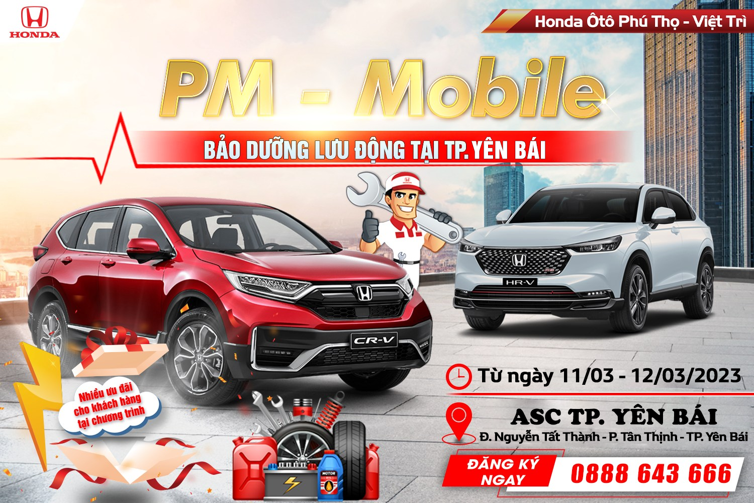 Honda Ôtô Việt Trì xin thông báo tới toàn thể quý khách hàng chương trình: Bảo dưỡng lưu động – tại TP. Yên Bái.