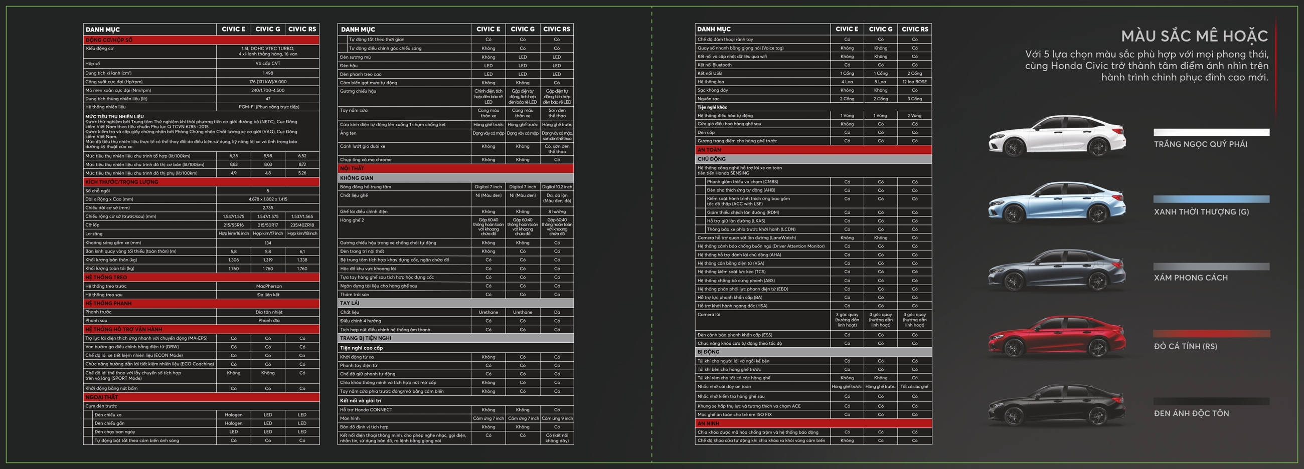 THÔNG SỐ KỸ THUẬT XE HONDA CIVIC